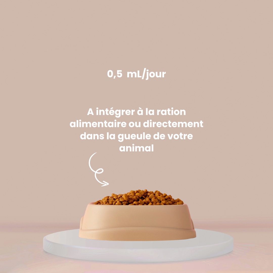 Conseils d’utilisation : 1 seringue doseuse de 0,5 mL par jour (ou 1⁄4 de cuillère à café). Multiplier par 2 la dose pour les chattes allaitantes. A intégrer à la ration alimentaire ou directement dans la gueule de votre chat. A conserver au réfrigérateur après ouverture et à consommer rapidement. Précautions d’emploi : Cet aliment complémentaire ne doit pas remplacer l’alimentation équilibrée de votre chat. Ne pas dépasser la dose quotidienne recommandée. Si votre chat est actuellement sous traitement médicamenteux, veuillez consulter votre vétérinaire avant utilisation. Ne pas donner aux très jeunes animaux.